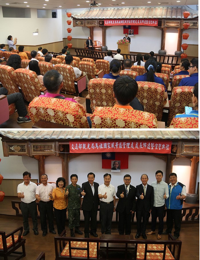 方正光接任新任馬管處長,交通部觀光局長張錫聰主持宣誓佈達典禮,地方府會首長、鄉長等及旅遊業者到場觀禮及祝賀。(圖/文:吳嘉榮)