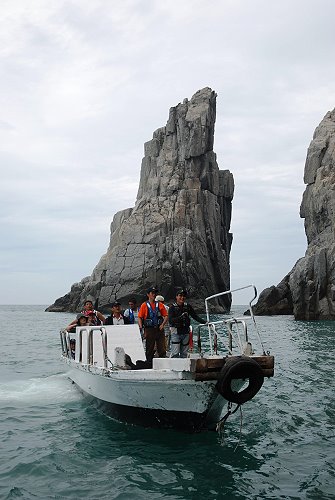 東引燈塔北面有一塊外礁,形狀像一把直立的扇子,老一輩的漁民稱之為「扇」或「扇墘」(福州話「墘」是邊緣之意)。隨著釣魚活動興起,「扇」的名稱已被「獨角帽」取代,在釣友的眼裡,這座礁石更像是一頂官帽。