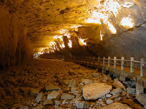 這條全長約五百公尺的坑道,在去年把午沙到坂里剩餘的三十公尺正式貫通之後,其中一段靠近午沙端出口的棧道在颱風時受損,馬管處今年投入經費完成修復,同時整修完成坂里段的進場道路及午沙端的步道,現在可以從坂里到午沙一路相通,也為北竿再添一處特色景點。