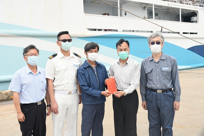 劉增應、馬祖連江航業董事長侯全寶等人19日上午9時前往碼頭區致贈工作獎金,臺馬之星船長李啟煌代表接受。