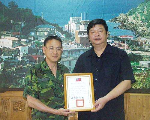 老馬祖 工兵組長陳信吉調台 服務地方十年 縣長贈感謝狀