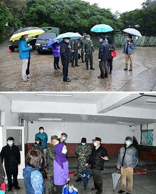 劉增應先後現勘二營區及主營區閒置空間,主要關心可收容面積,也提醒包括三餐及生活起居、盥洗設施等設備都應力求完備,盡量避免疑似病患的移動及增加接觸對象。邱之峰表示,盡快就每位病患所需的生活空間為基準,將營區內閒置的房舍及中山室等空間做整體規劃,再提報給指揮中心。