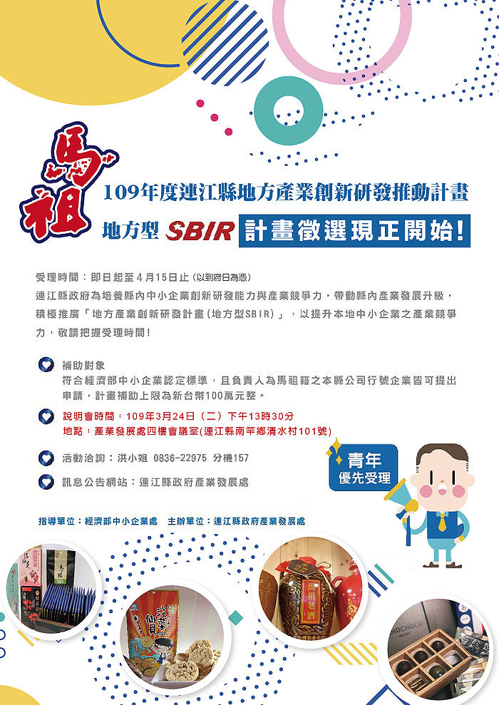 109年度連江縣地方型SBIR計畫說明會24日產發處舉行,歡迎踴躍參加