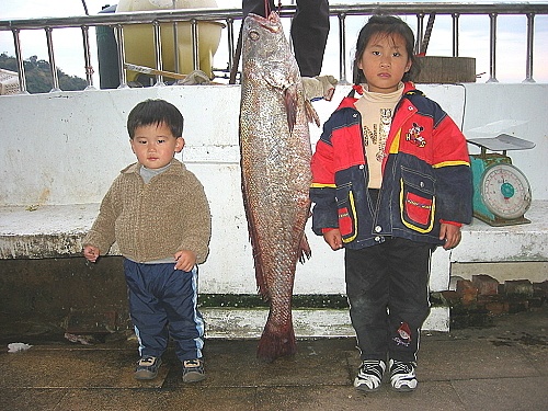 二十九斤的大鮸魚相當於一個五歲孩子的身高。(圖/文:林冰芳)