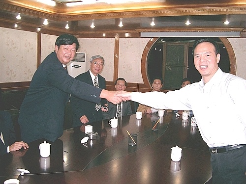 連江縣長陳雪生在返馬前夕,與立委曹原彰前往拜會福建省台辦主任張廣敏,除對馬尾落地簽及開放每日百人遊馬祖,做最後表達立場及意見交換之外,亦感謝由區、市至省台辦這近四年的奔波連繫、推動及促成兩馬小三通事務。