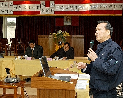 警察局局長許呈傑表示,連江縣警察局本「依法行政、行政中立、安全第一」的原則,加強各項勤務規劃與嚴密犯罪偵防作業,並置重點在加強各候選人競選總部、服務處、後援會以及選舉委員會、法院、各黨黨部等重要治安要點與投開票所的安全維護,嚴防暴力、金錢介入選舉。