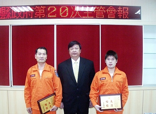 水上救生大隊林平鑒陳學政奮勇救人 縣長頒獎鼓勵