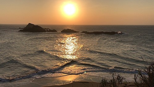 繼今年四月方塊藍之後,西莒方塊海再以不同面貌呈現,「夕陽+方塊海」在蛇島全景的襯托下,一樣令人驚艷。