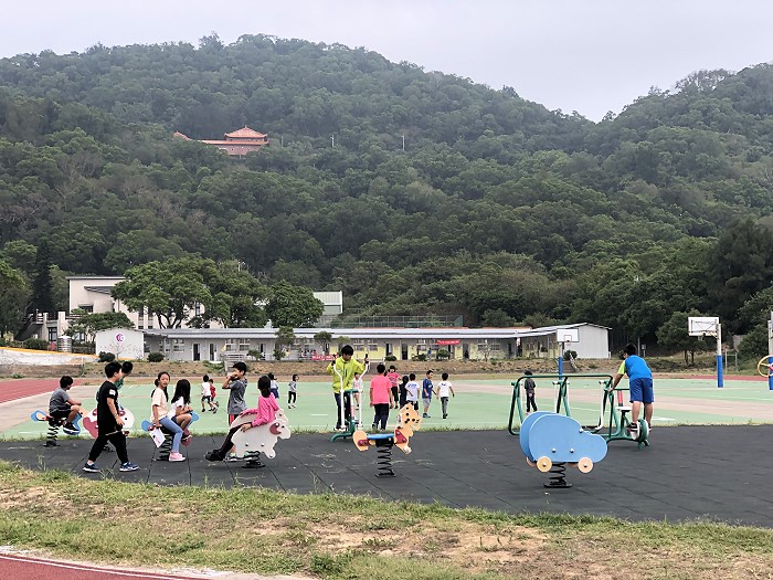 塘岐國小本學期開始在運動場臨時教室上課,臨時教室空間雖小但各項設備一應俱全,最令小朋友開心的是教室前的大運動場,下課時間可以隨便怎麼玩,比起校本部,臨時教室其實一點也不小。