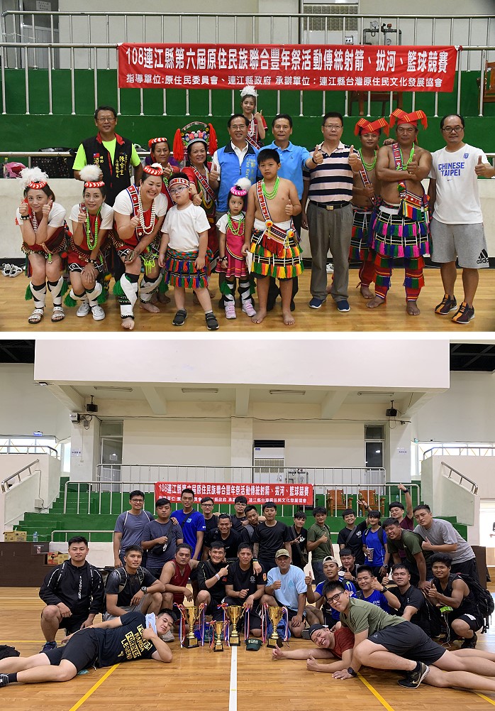 據統計,入籍馬祖的原住民朋友共有282人,若再加上軍中弟兄,馬祖地區有400多位原住民朋友,每年舉辦的體育會是地區原住民朋友最盛大活動。第六屆原住民豐年祭傳統競技賽15日上午在南竿體育館舉辦開幕典禮,副縣長王忠銘、原住民立法委員鄭天財Sra.Kacaw、縣議員陳玉發,到場主持開幕,在原住民進行傳統舞蹈表演開場後,接續進行籃球前三名、團體拔河前三名比賽。
