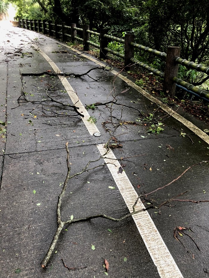 馬祖從11日入夜到12日上午感受「璨樹」颱風過境,各鄉風勢、雨勢有限,未造成重大災情,僅部分道路斷枝落葉。(圖/文:曹重偉)
