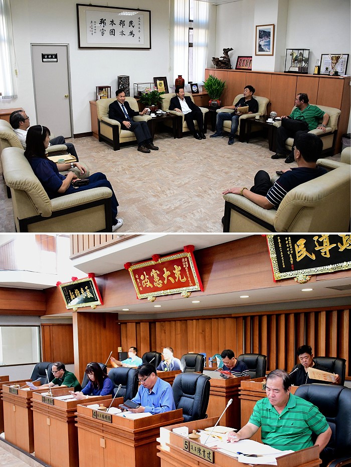 縣議會第6屆第8次定期大會4日開議,議員們完成報到手續並召開預備會議;縣長劉增應、秘書長張龍德專程前往拜會,受到議長張永江、副議長陳書建及議員們的熱情歡迎。(圖/文:曹重偉)