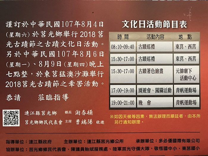 2018莒光鄉古蹟節重頭戲8月4日登場,歡迎大家來莒光體驗人文古蹟之美!(圖/文:宋幸儒、莒光鄉公所)