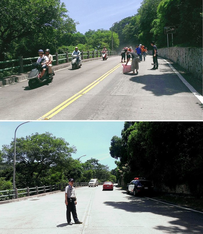 經過環資局大力宣導與策進作為,道路漏油有逐漸趨緩情勢,而警方在接獲環資局通報後立即派員至污染現場執行交通管制作業,協助環資局調閱沿線監視影像資料,以查明可疑之污染行為人。(圖/文:曹重偉)