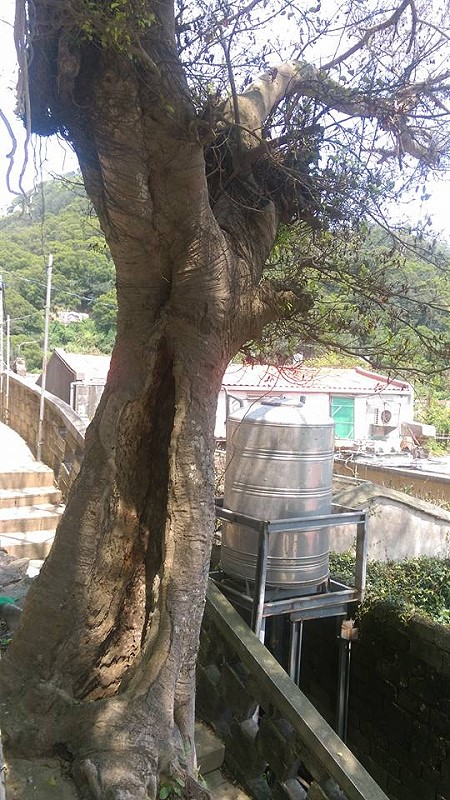 位在中隴後方的百年榕樹樹幹遭蟲蟻蛀蝕長而深大洞。(圖:林滿正提供)