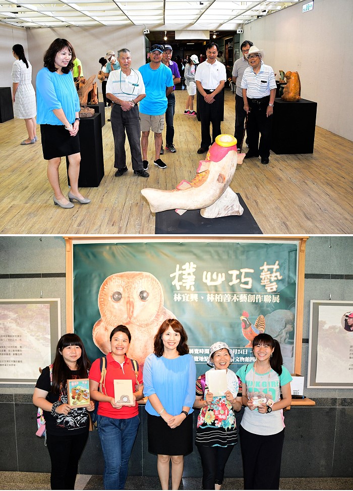樸心巧藝木藝創作聯展展出由林宜興、林柏善兩位在地鄉親10多年的精心創作,即起至8月26日在民俗文物館四樓特展室展出;昨天上午11時特舉辦開幕式,由處長吳曉雲主持,吸引包括縣長劉增應及不少遊客鄉親前來欣賞,津沙村也有多位村民專程來為兩位津沙之光加油。