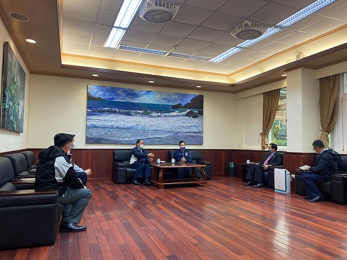海委會主委李仲威16日上午拜會縣長劉增應、議長張永江就海巡執勤工作及任務交換意見及爭取海巡大樓廳舍興建。(圖:連江縣政府)