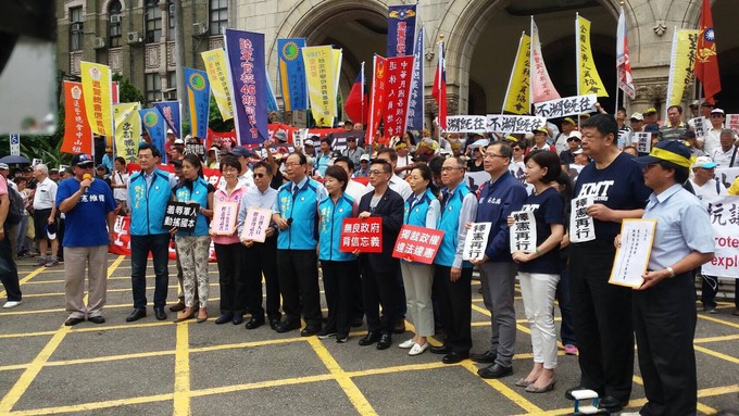 陳雪生(圖右2)與國民黨籍立委共13位13日聲援軍公教警消團體向司法院遞送公教人員退休資遣撫卹辦法、條例提出憲法訴願3份釋憲暨暫時處分聲請書。(圖:陳雪生國會辦公室)