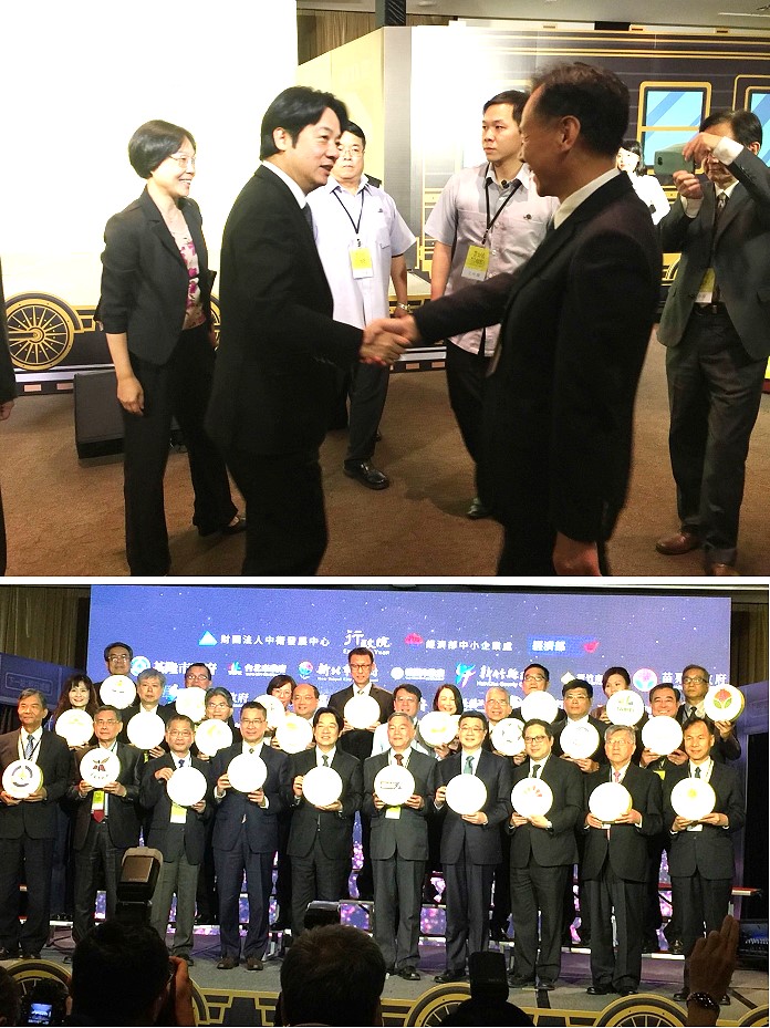 經濟部中小企業處「明日城鄉.一起共好」前瞻城鄉建設高峰會暨願景論壇11日台北舉行,縣長劉增應當天往返出席,院長賴清德入場與劉握手致意。(圖:連江縣政府產發處)