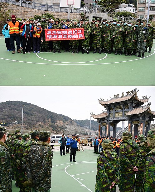 今年國清週首階段於1月29日起展開,由南竿鄉西區與東引鄉率先開跑;為展現全縣一起以乾淨環境迎接新年的氣氛,昨天上午特舉辦誓師大會,由副縣長王忠銘主持,包括環資局長張壽華、鄉長陳振國及多位軍官都到場致意,稱讚弟兄及清潔隊員不畏寒風清潔家園。