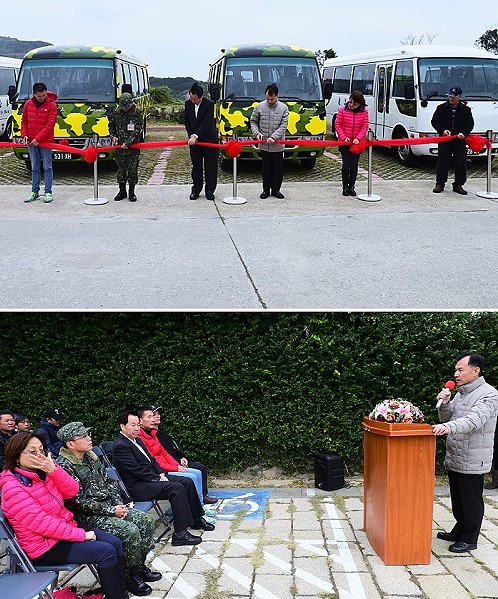 【本報訊】東引4輛嶄新觀光公車昨天辦理啟用儀式,縣長劉增應指出,這次新購的觀光公車是充分為東引道路特性量身訂做的,其中二部車身彩繪迷彩圖案,呈顯前線戰地風情,提供遊客不一樣的旅遊體驗。