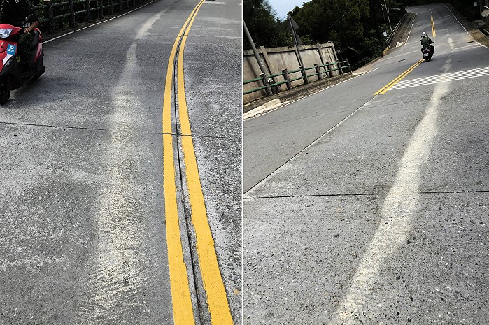 南竿山線5日傍晚又發生漏油事件,油漬污染範圍從中央大道與環山路口,一直延續到成功山附近,所幸發現得早沒有人員受傷;連江縣環境資源局也表示,此案已查獲污染行為人,並依據廢棄物清理法相關規定逕行告發處分。(圖/文:曹重偉)