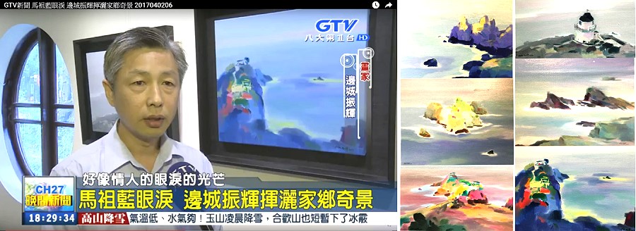 【本報訊】2017馬祖「藍眼淚」1日台北發表會,邊城振輝《藍眼淚》油畫特展同步展出相得益彰,並添「藍眼淚」知性、柔情之美。八大電視(GTV)新聞當天完整報導「馬袓藍眼淚,邊城振輝揮灑家鄉奇景」,3日上架youtube可公開連結影音檔,陳振輝、劉麗珠夫婦看到非常開心。